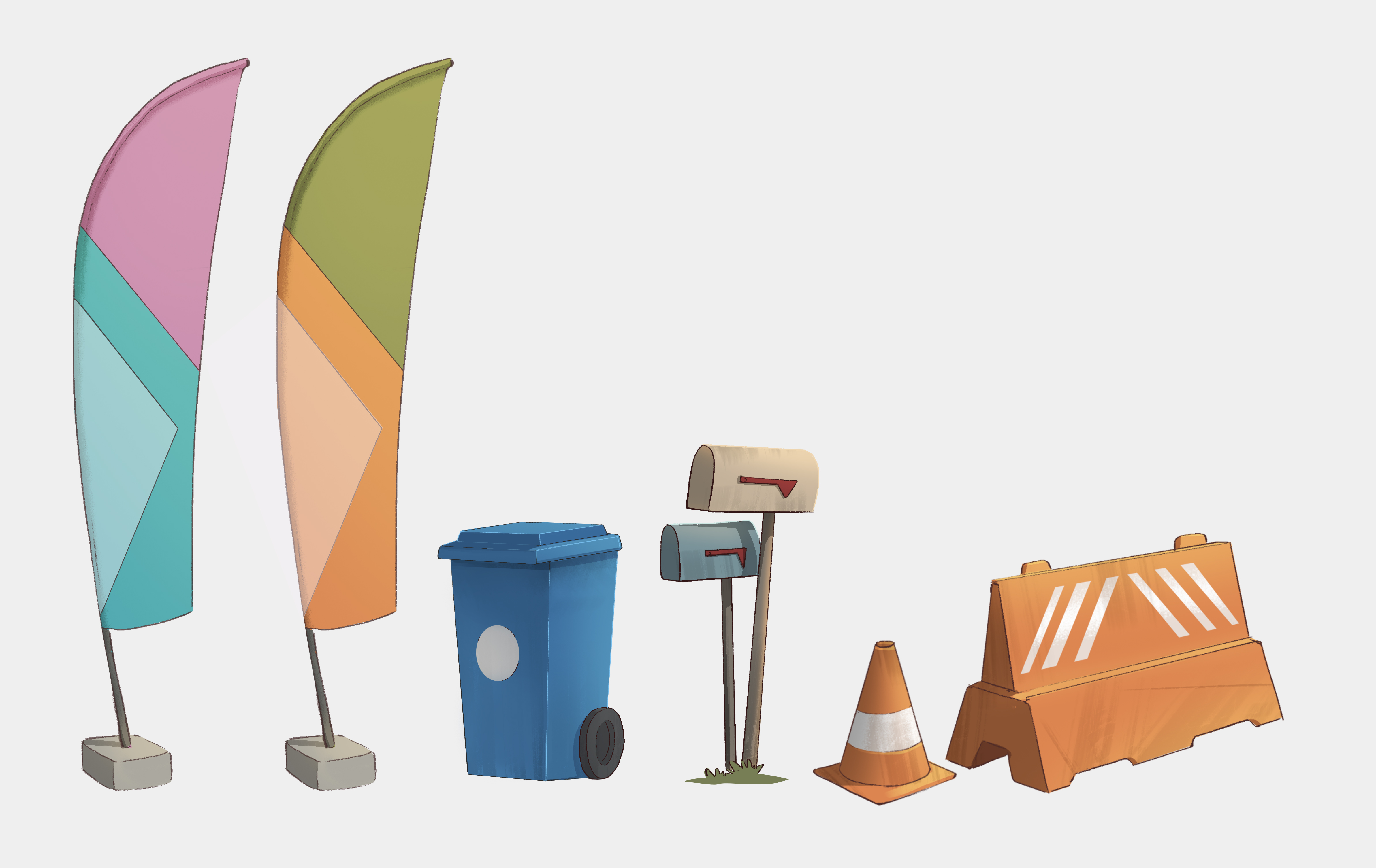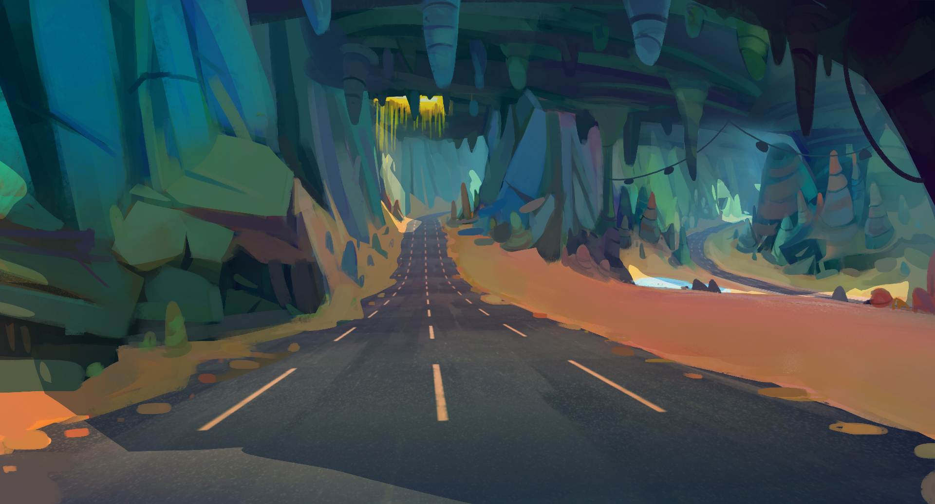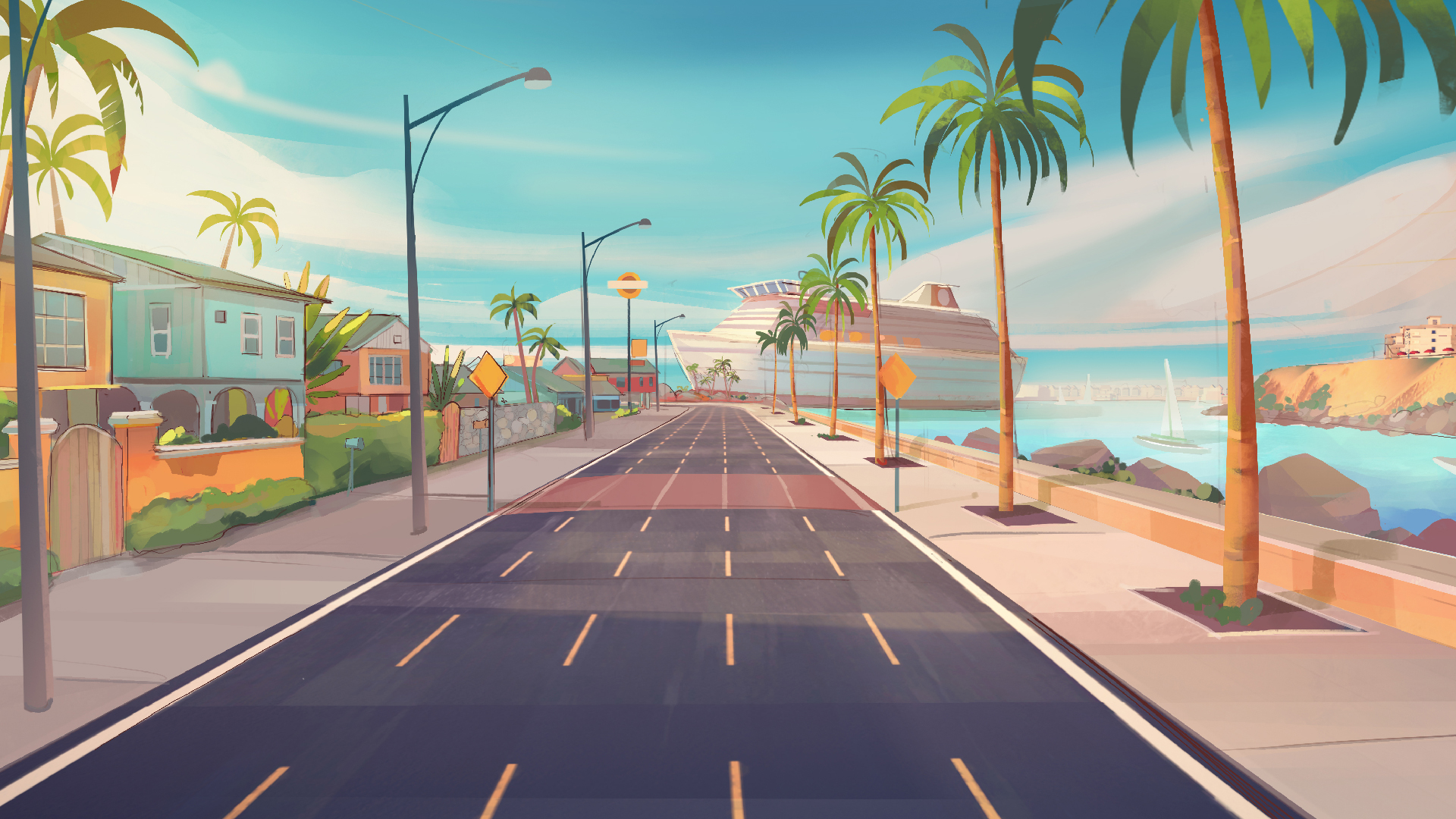 All we had was the track and an empty map around. If you pay attention to our Florida concepts above, you might see that everything around the track is a sketchy version of what would become our first assets. My professional background is in illustration and coloring comic books. When I joined the company and delivered the first colored concepts our Art Director said to me “That’s it! Horizon Chase 2 is all about the colors”.All we had was the track and an empty map around. If you pay attention to our Florida concepts above, you might see that everything around the track is a sketchy version of what would become our first assets. My professional background is in illustration and coloring comic books. When I joined the company and delivered the first colored concepts our Art Director said to me “That’s it! Horizon Chase 2 is all about the colors”.