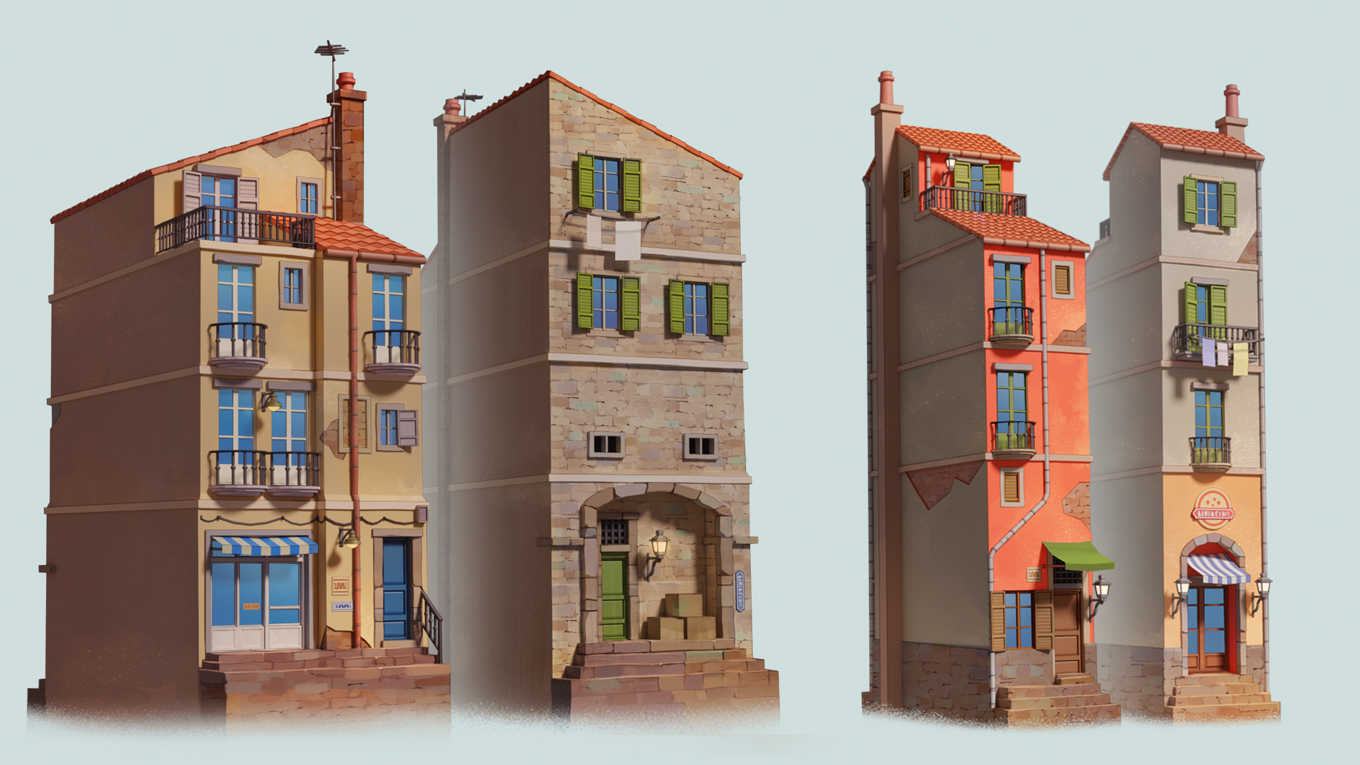 However, being 3D does not mean we want to be realistic - as I mentioned before. So we kept the still illustrated horizon and we made sure that our storyboard had the perfect mix of 3D assets with 2D illustrations background.